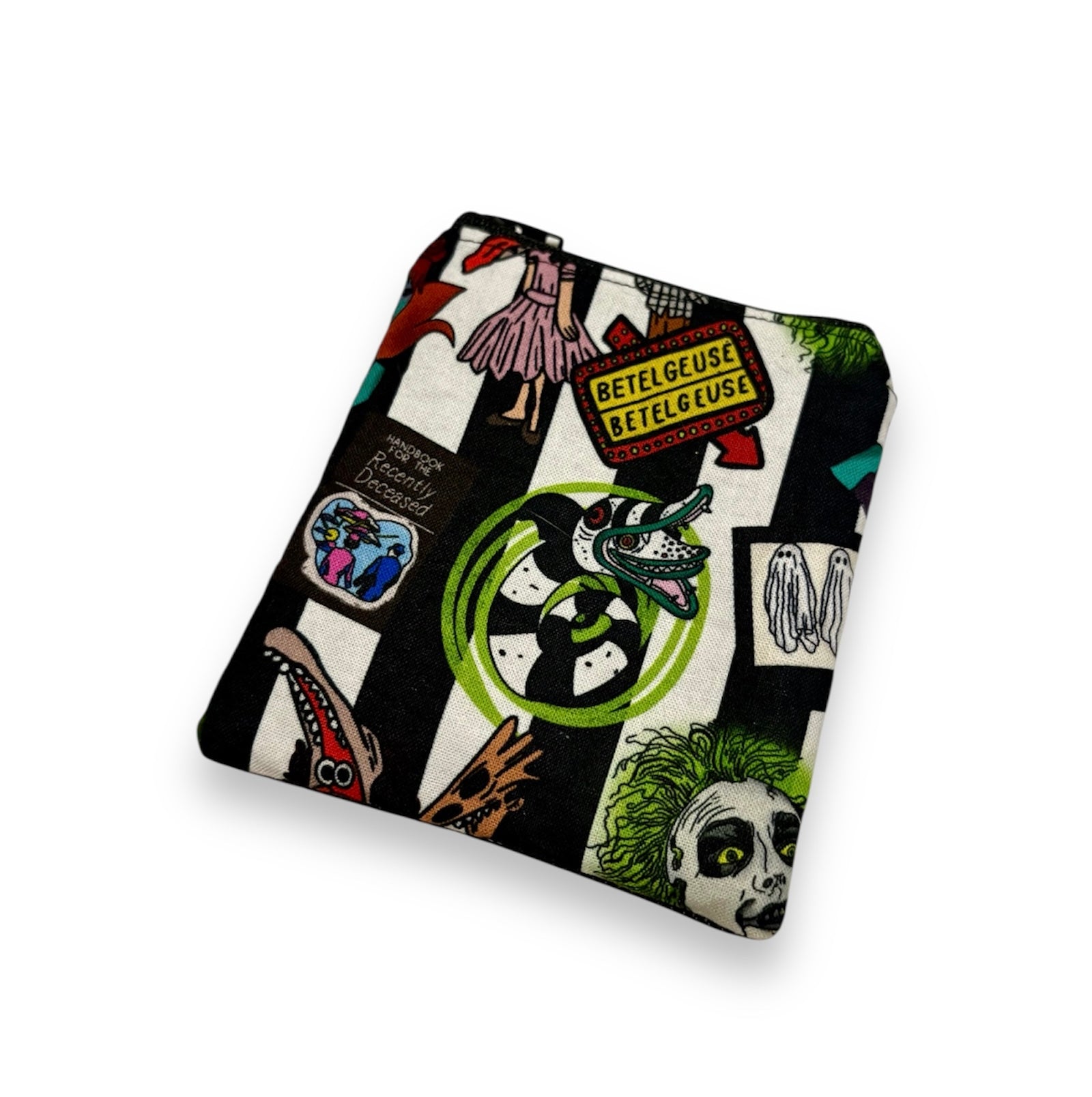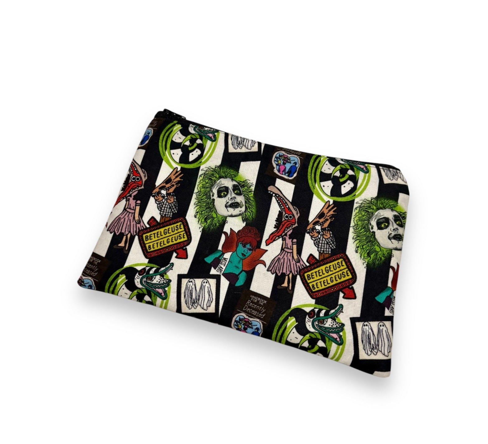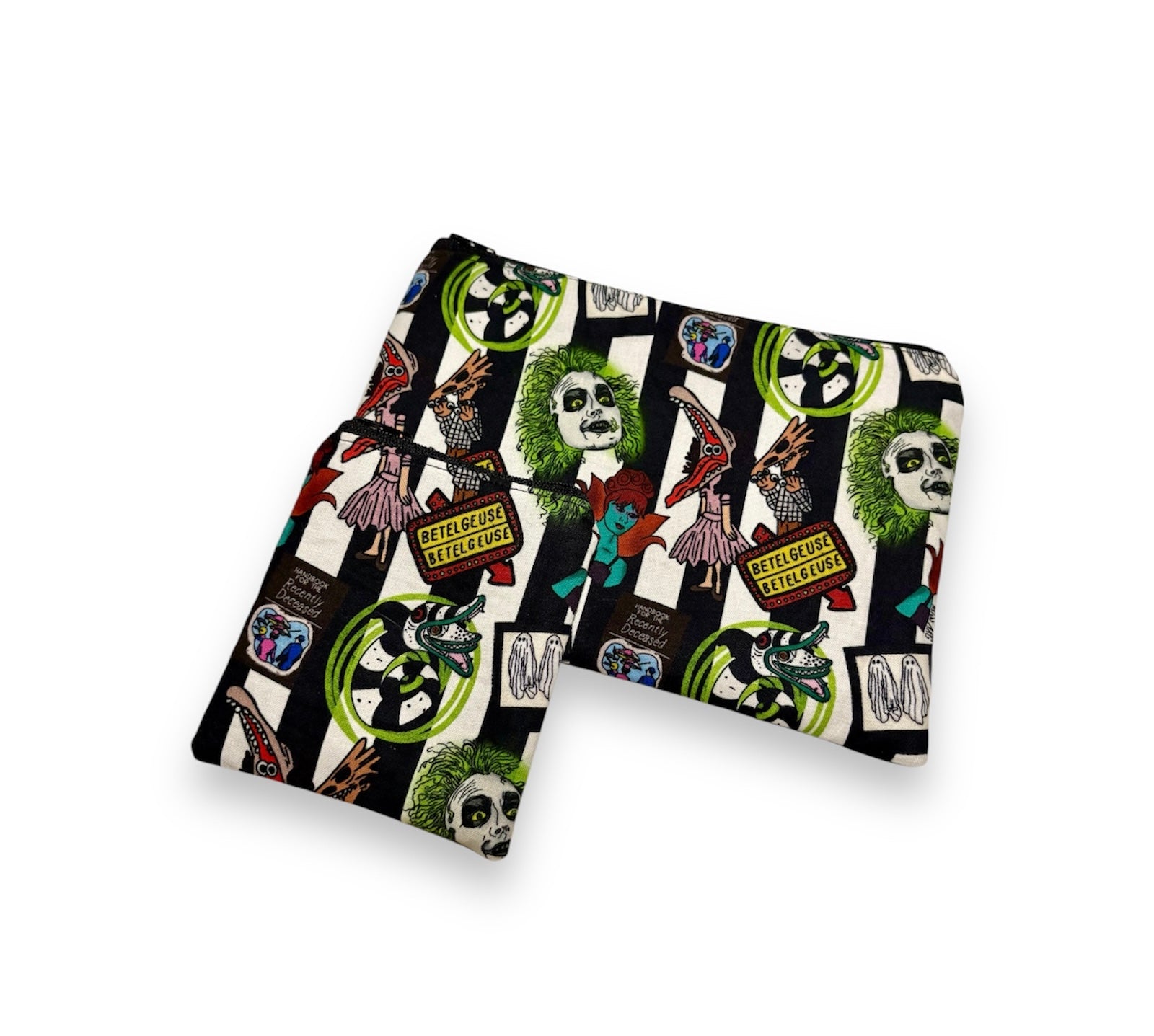 Impreso a mano • 100% algodón • Correa de mano en mezclilla • Vinilo vegano en la parte posterior • Tejido decorativo en el interior • Cierre de cremallera YKK.
